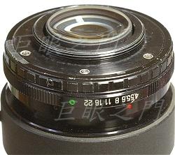 這個零件是調整光圈位置的,有時光圈位置有些不準確,這個零件就可以調整前後,使光圈環調在 4.5 時光圈也在最大。