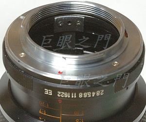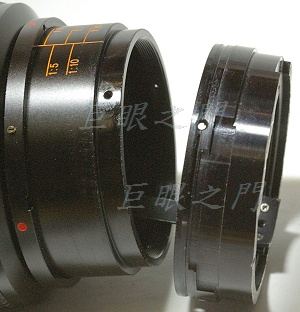 不過這個鏡本來是被人過的,改了一半大概發現很難搞,尾巴原來鎖了一個 Pentax K 接環,原來是用銼刀磨的,當然根本不平,這樣改是不行的,尾巴要切短一定要用車床,不平的話光軸就不會對,光軸歪了,再好的銘鏡畫質都會變差。