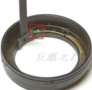 但這樣就沒位置放原來的光圈連動環,因此要另起爐灶,以前同廠牌的類似結構就是這樣改的,把這個位置磨個缺口,磨多大後面會說明。