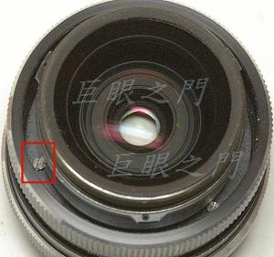 前面的銘環轉下來就可以看到裡面固定濾鏡環的螺絲,但是三隻螺絲竟然外觀都不同,顯然應該是拆過的。