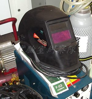 這是超先進的焊接面罩,會自動感應強光而變暗,當然不是要每個實驗室都買這種等級的,只是告訴各位,有這樣先進的防護具。